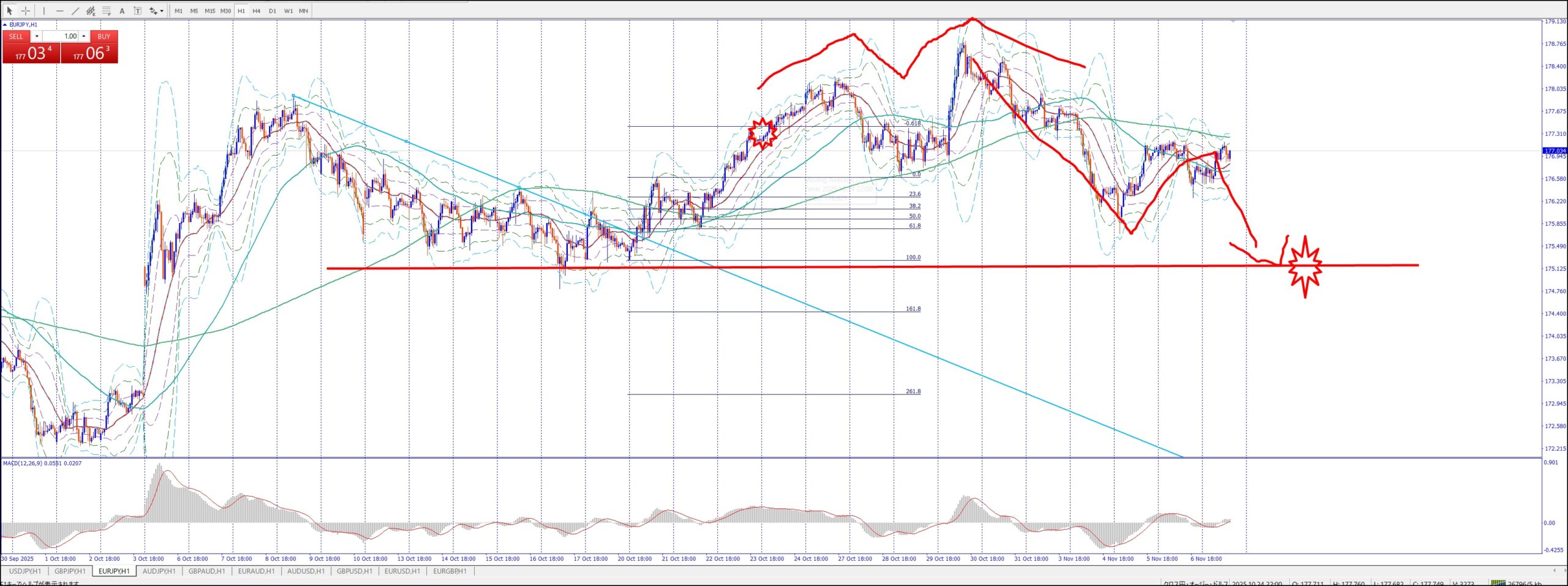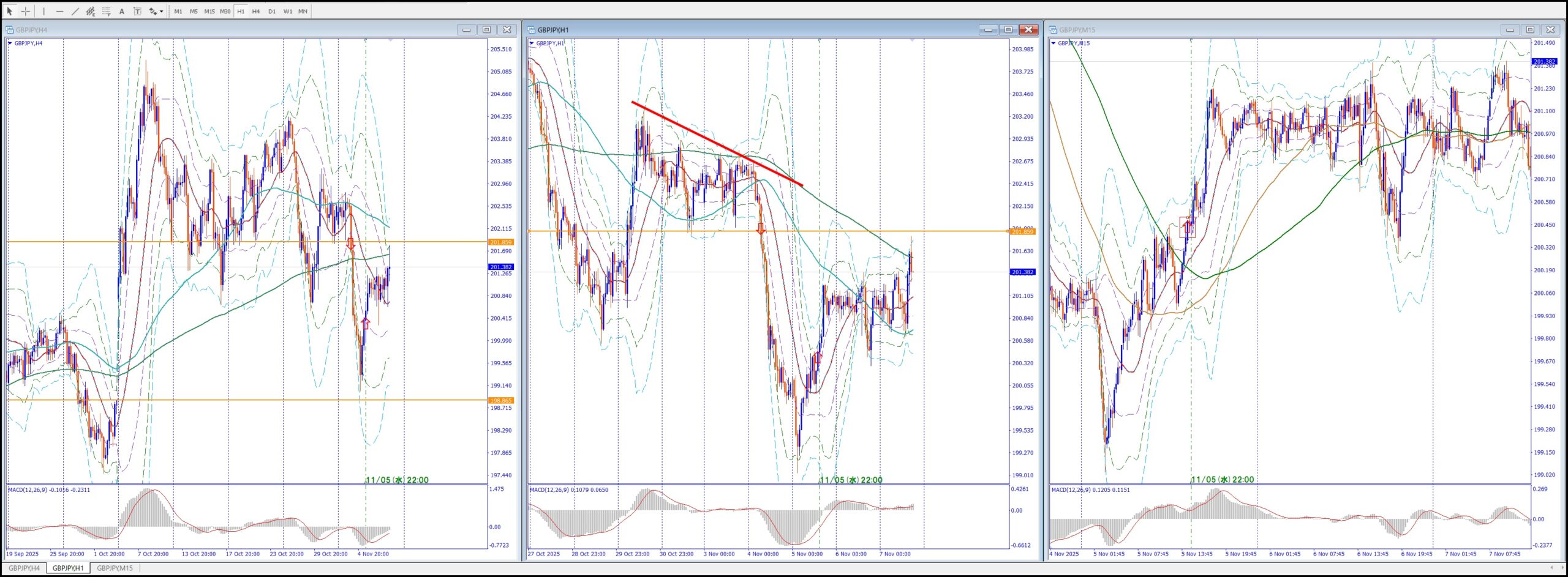 11月6日(木)8時頃の1hでのWボトム上抜けからの買いはあり。4hの20maメド。