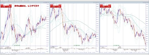 → 上下激しくリスク高いが。抜けて行くタイミング判断難しい。上抜けても大きく戻して損切らせてから再度上げるパターン多い