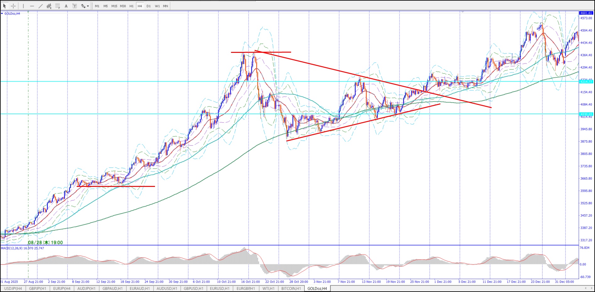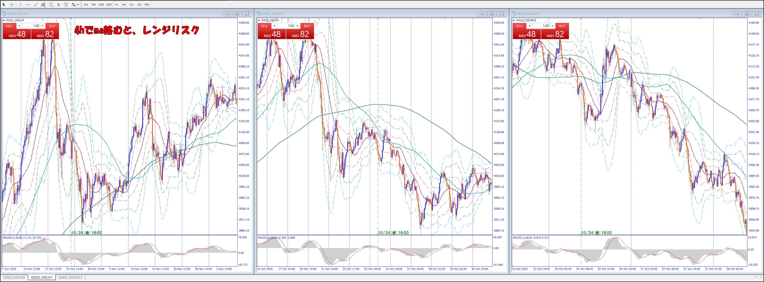 → 上下激しくリスク高いが。抜けて行くタイミング判断難しい。上抜けても大きく戻して損切らせてから再度上げるパターン多い