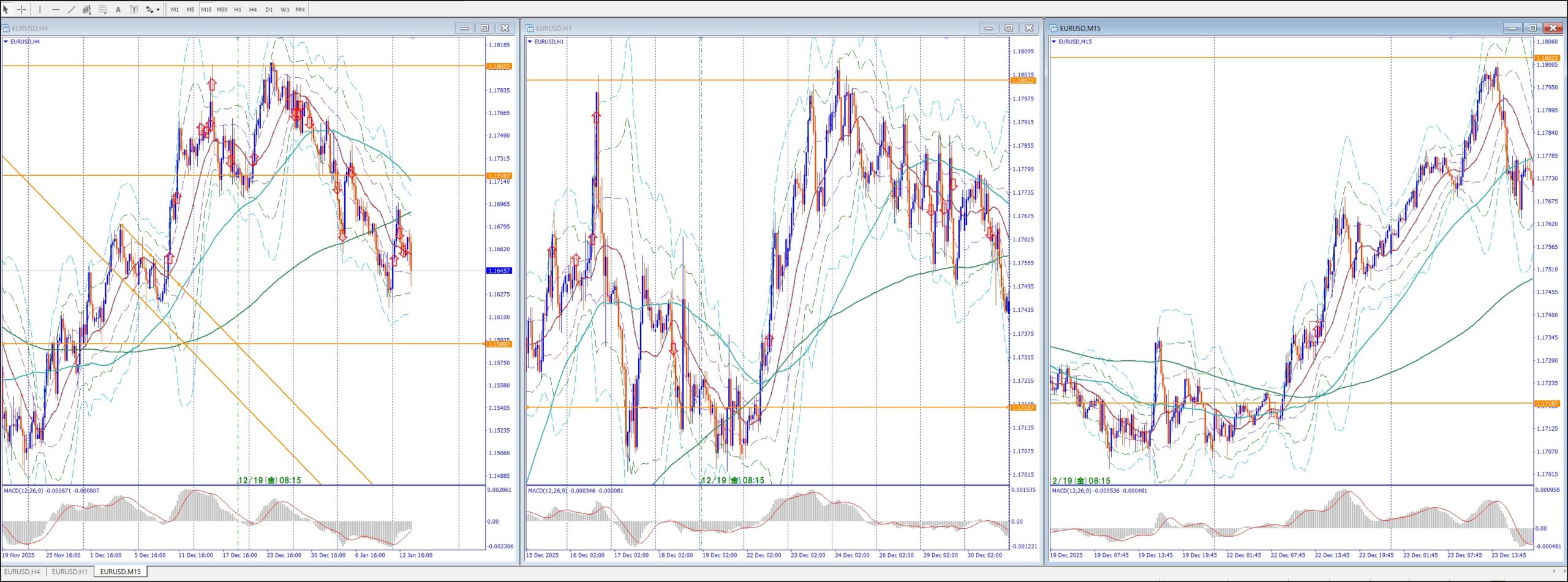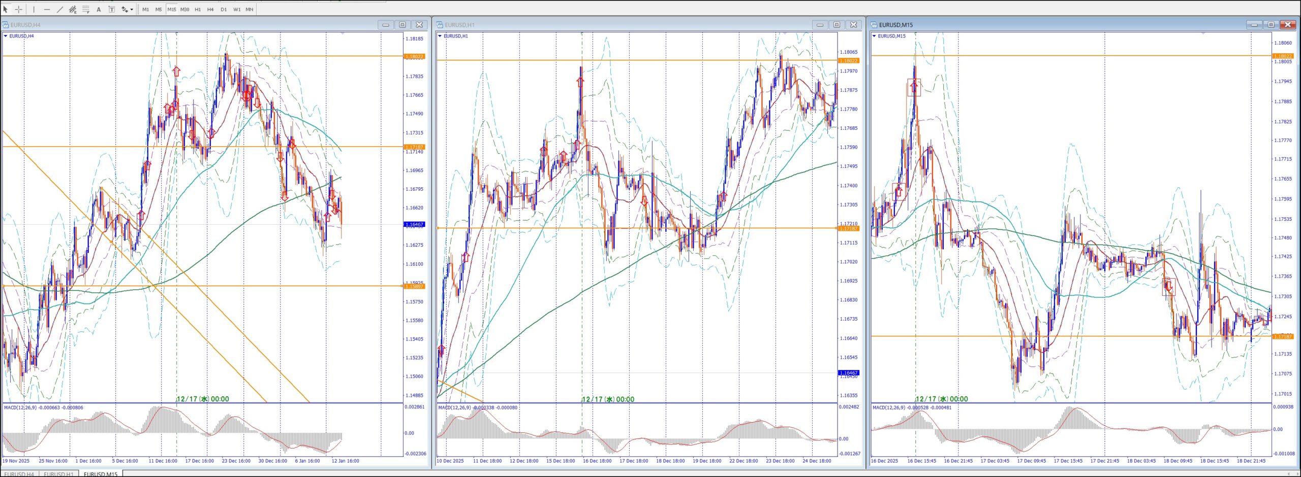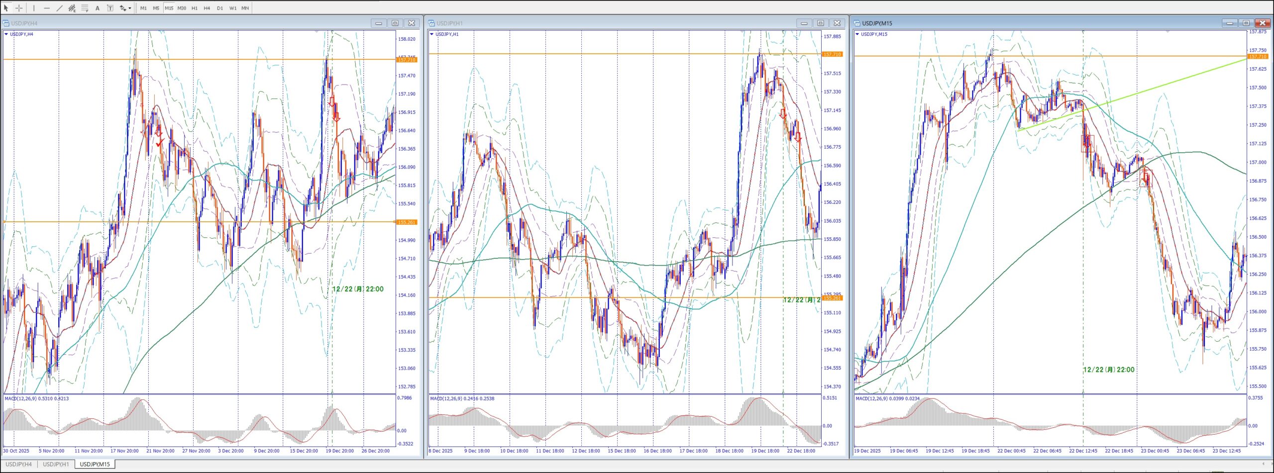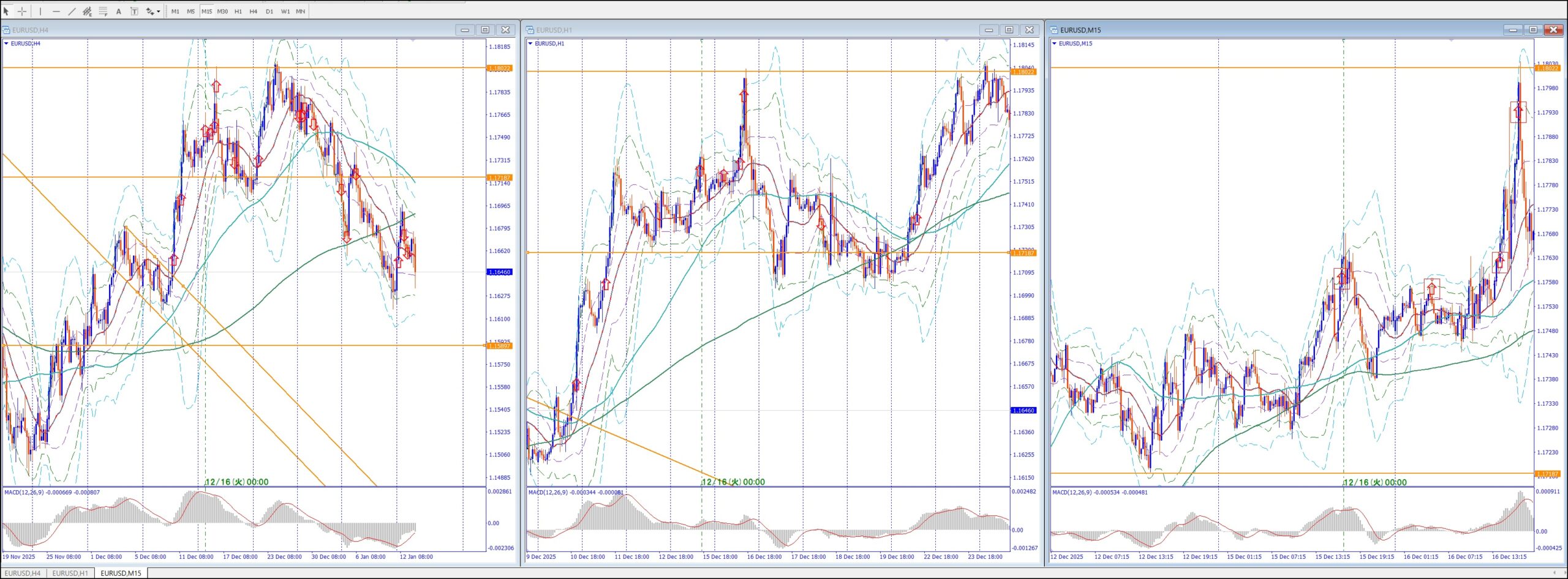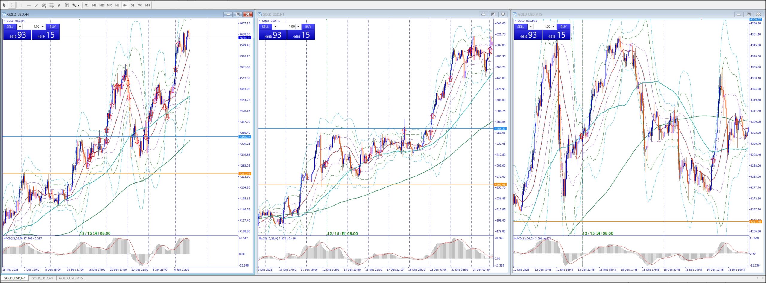 15Mでは、4Hの上のレジスタンスまで買い目線、上昇してる。