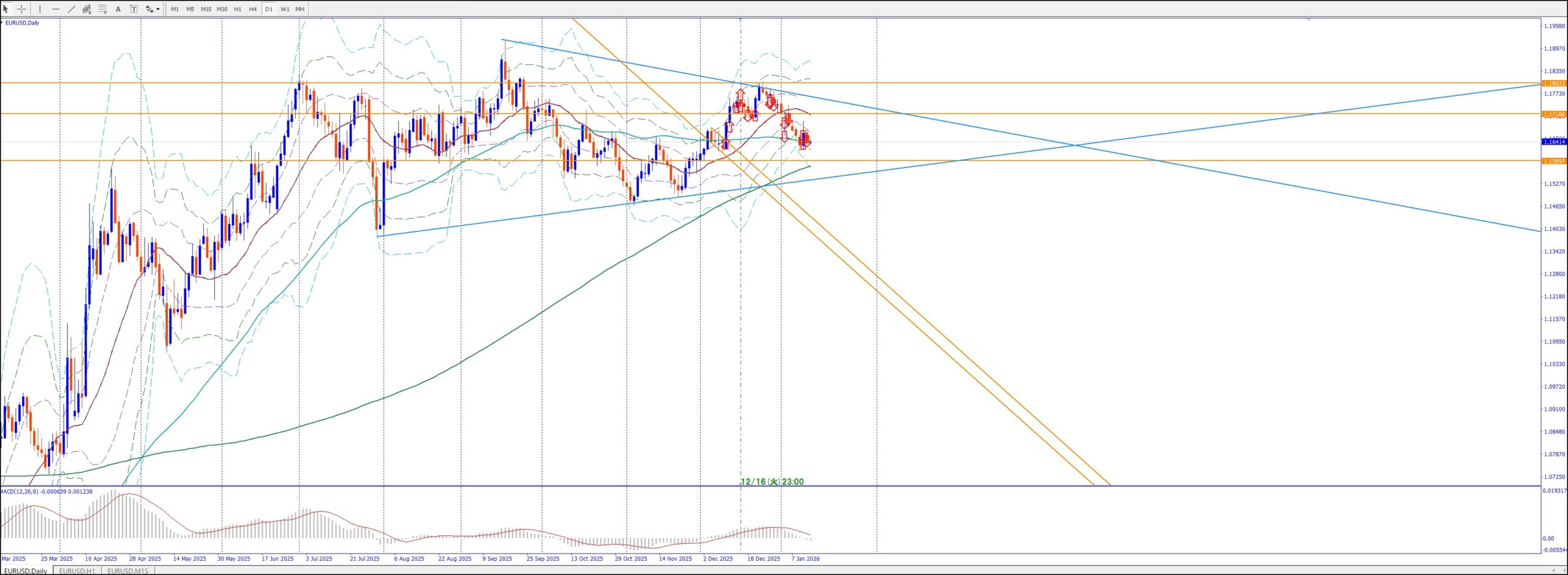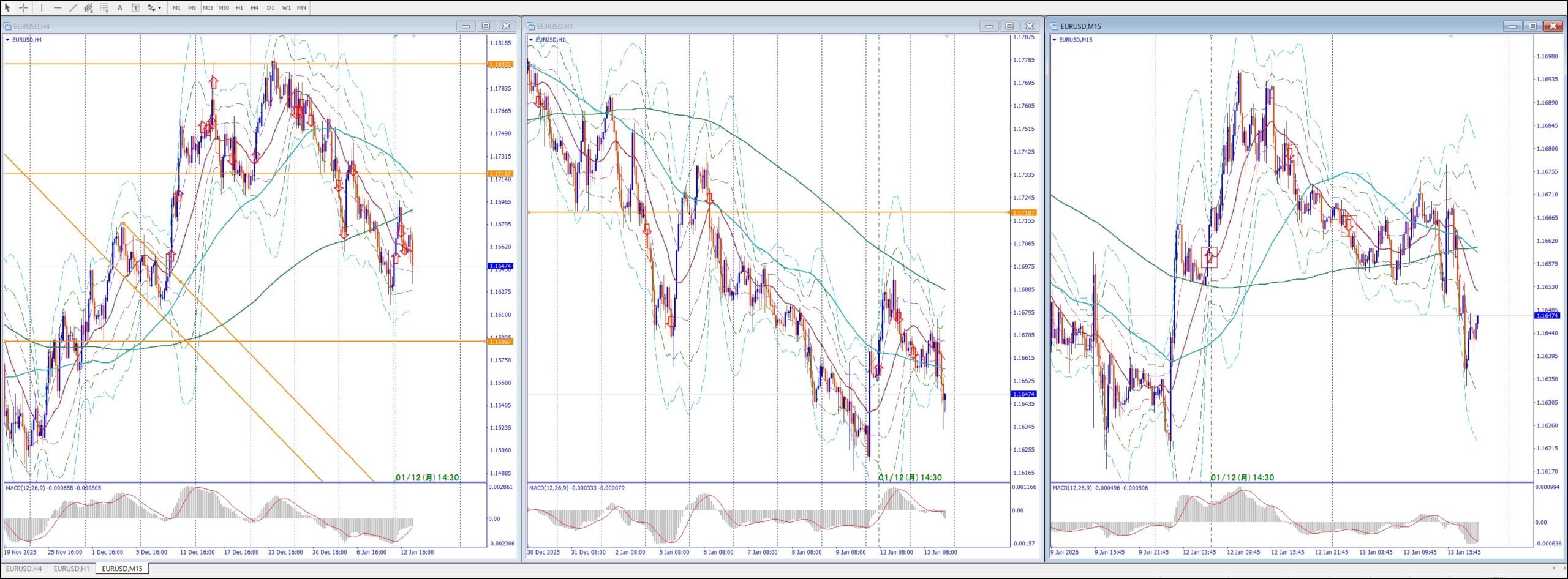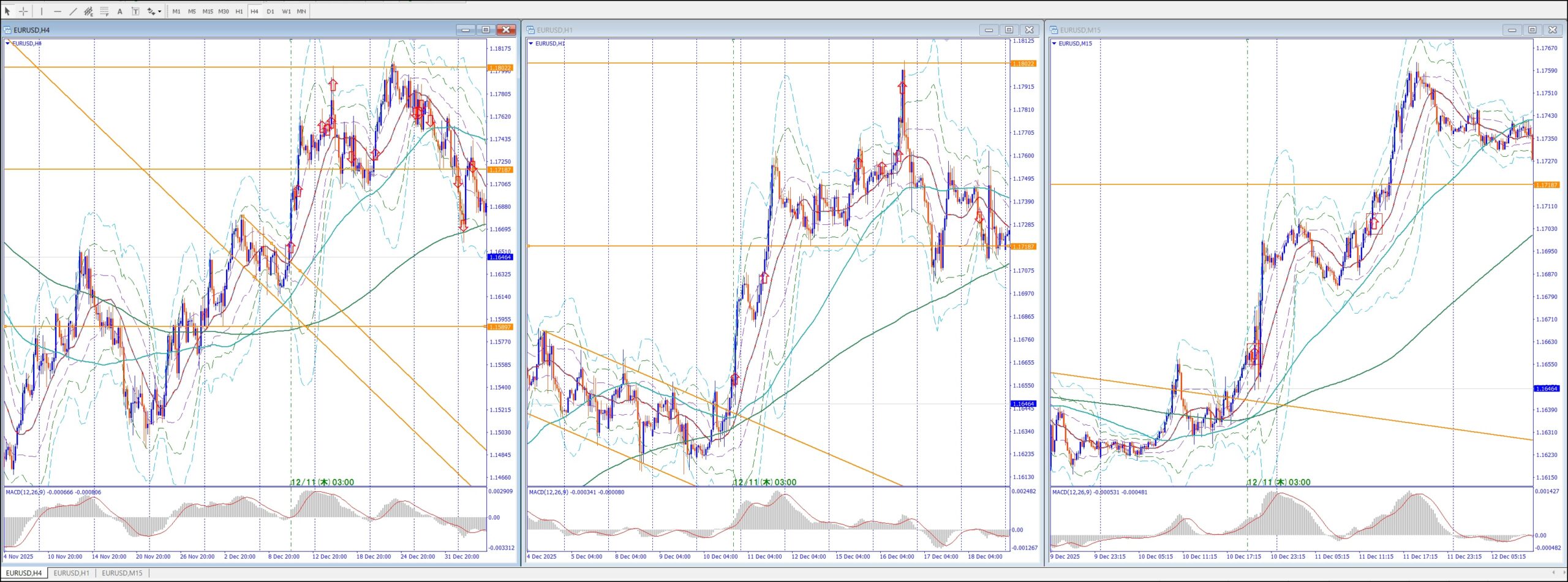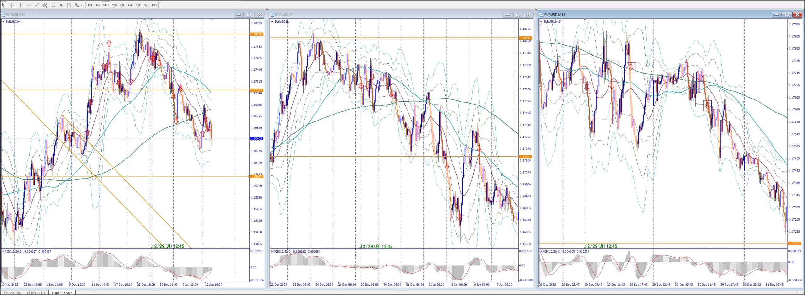 15Mでは、4Hの上のレジスタンスまで買い目線、上昇してる。