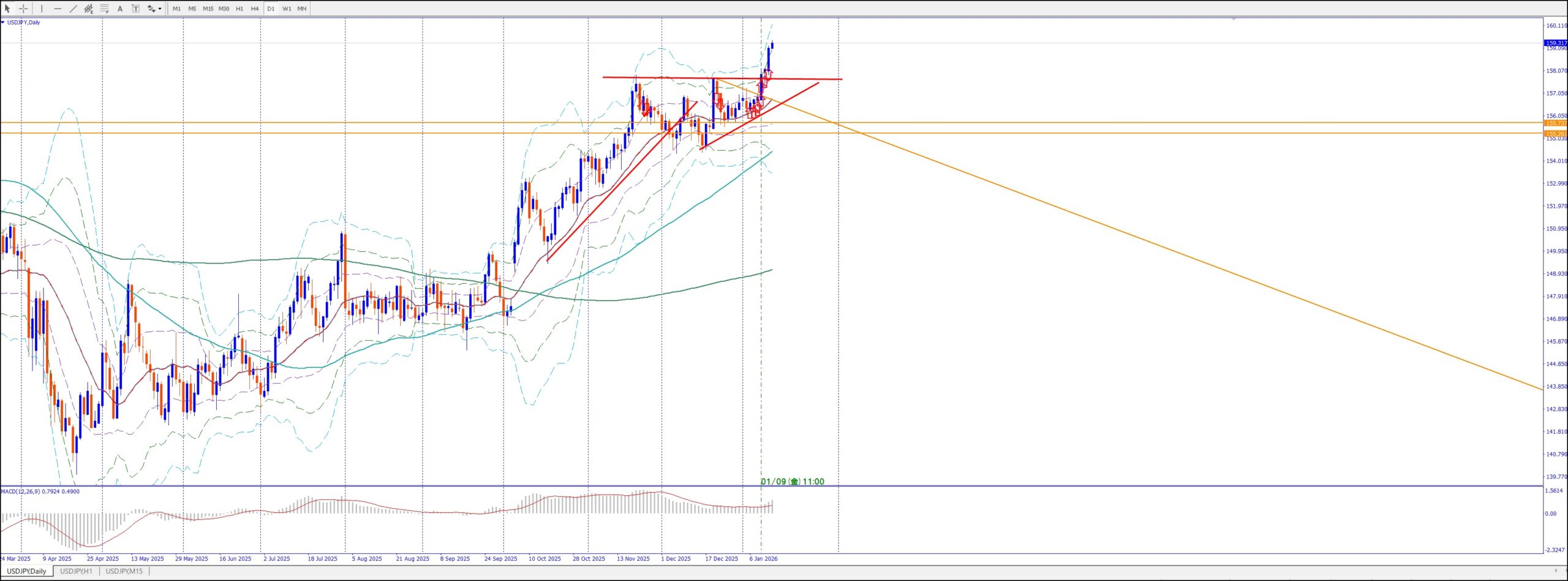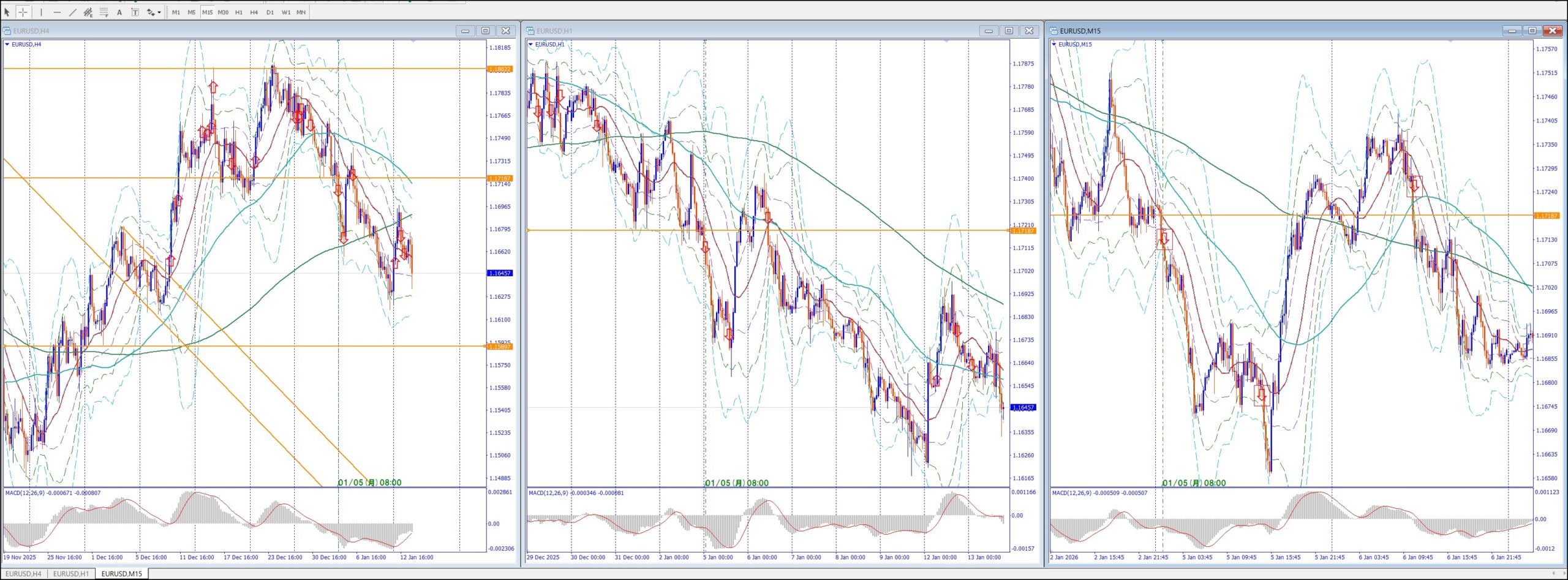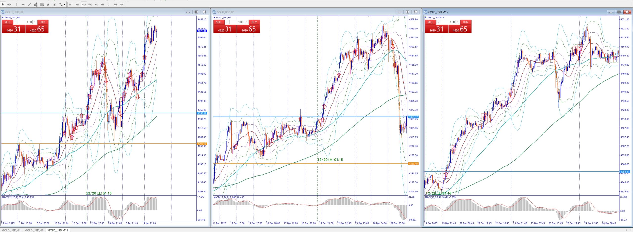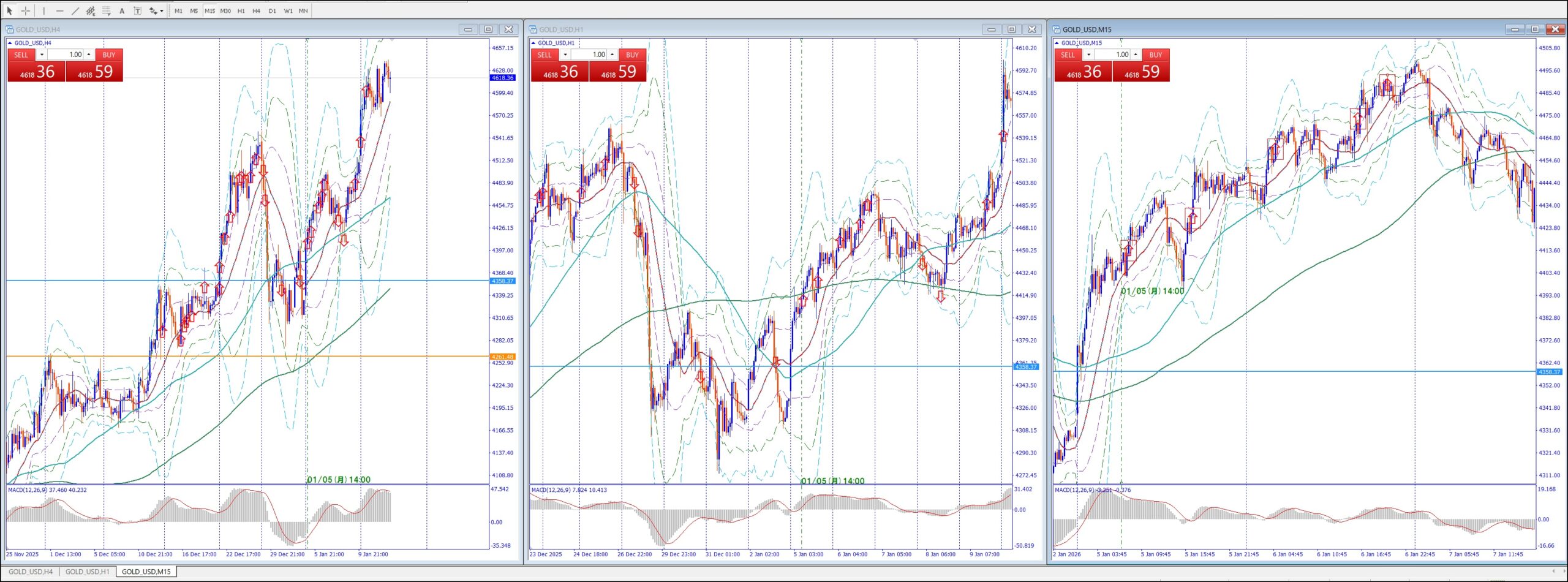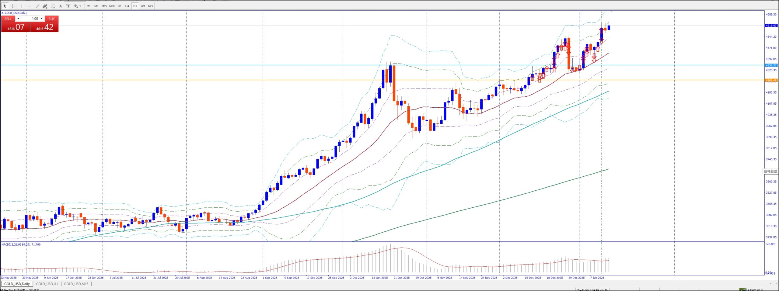 15Mでは、4Hの上のレジスタンスまで買い目線、上昇してる。