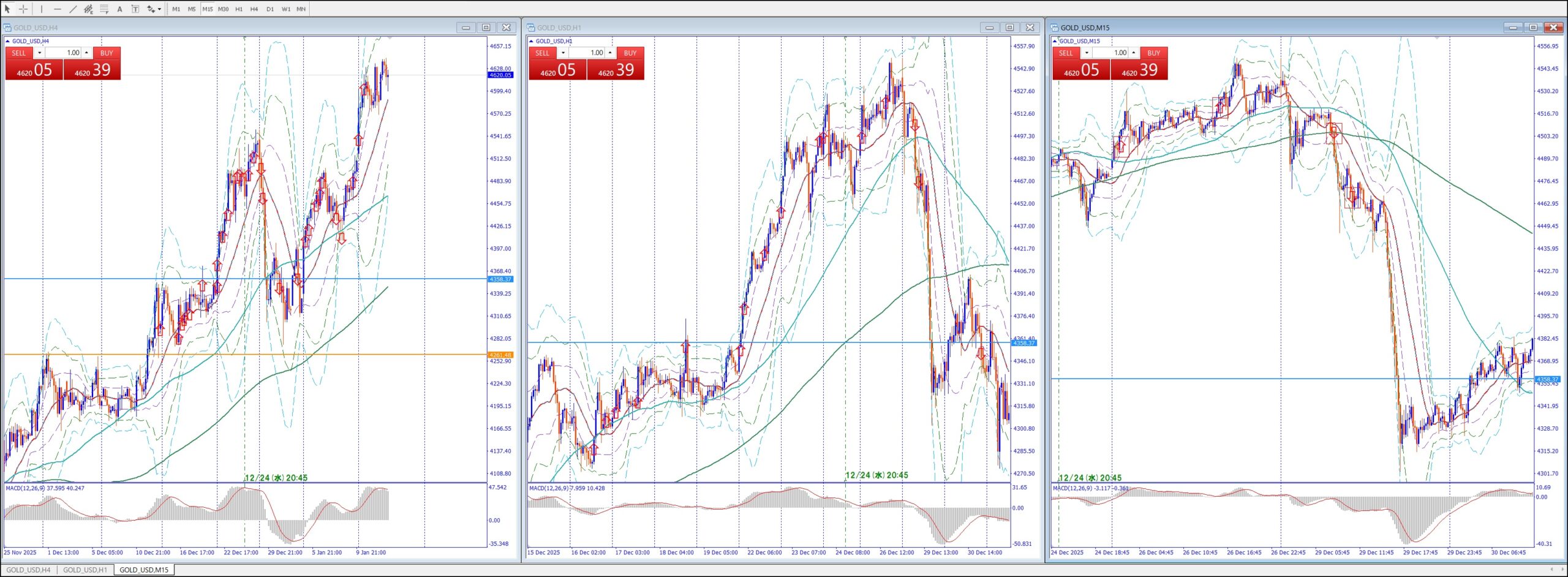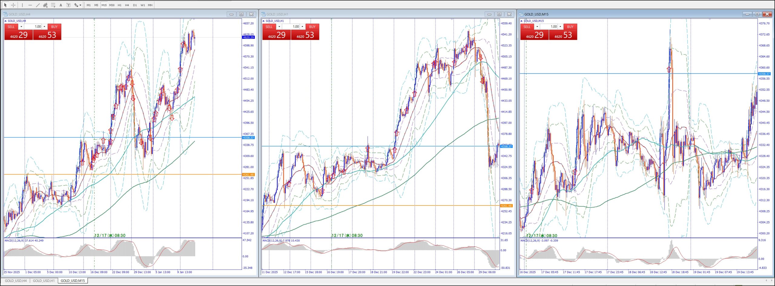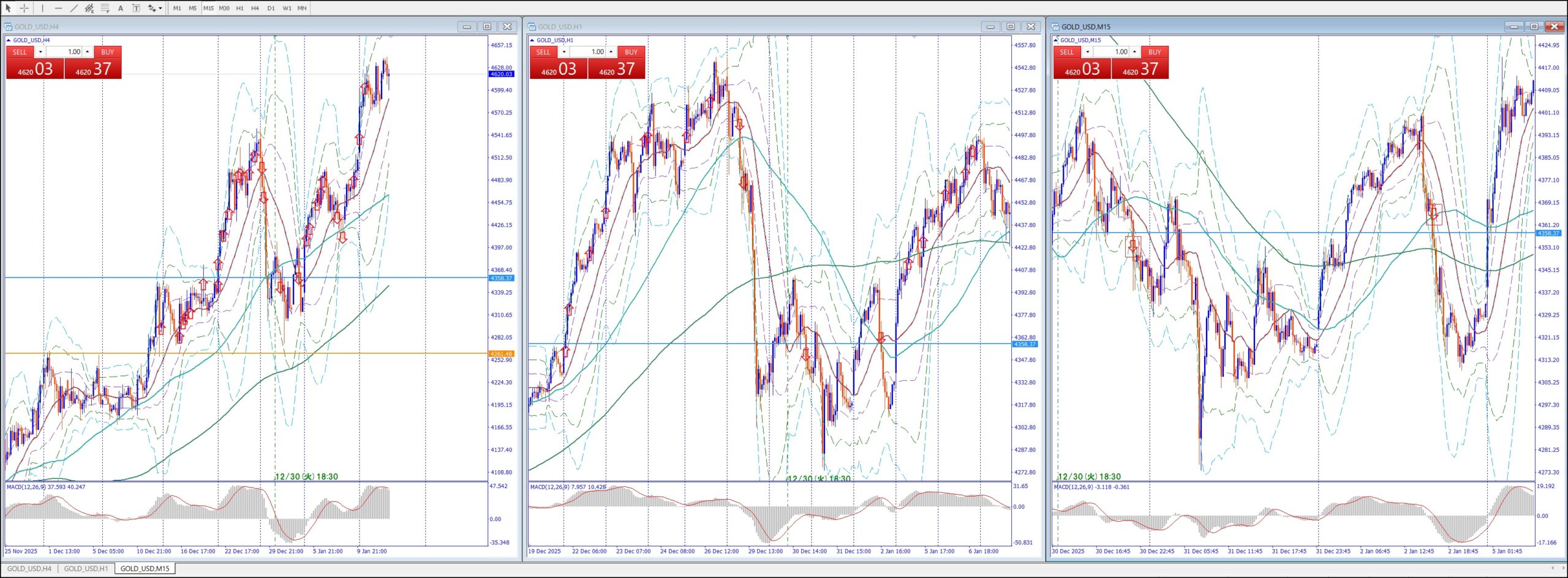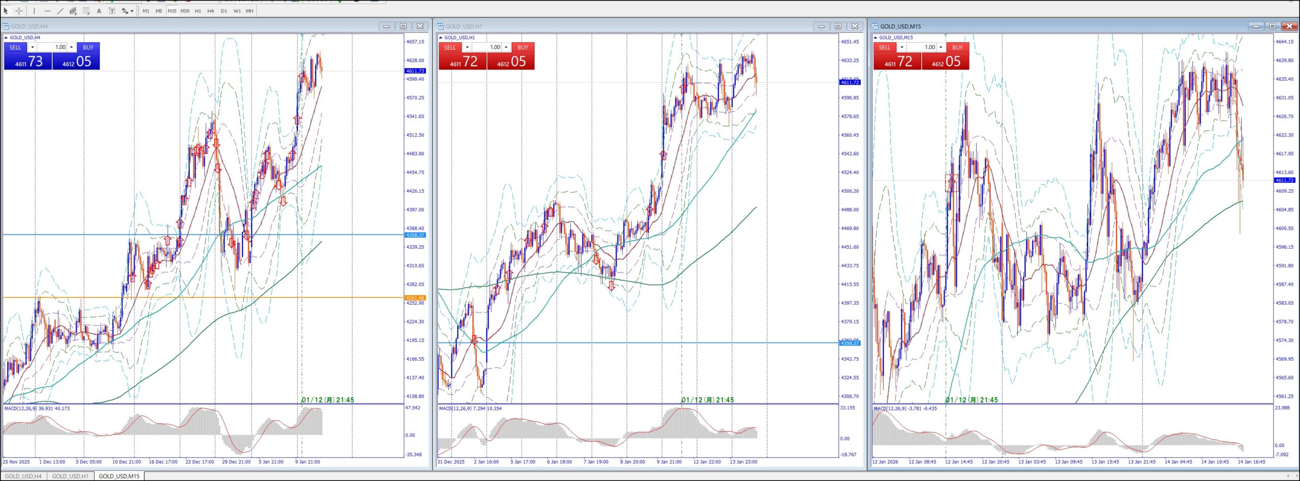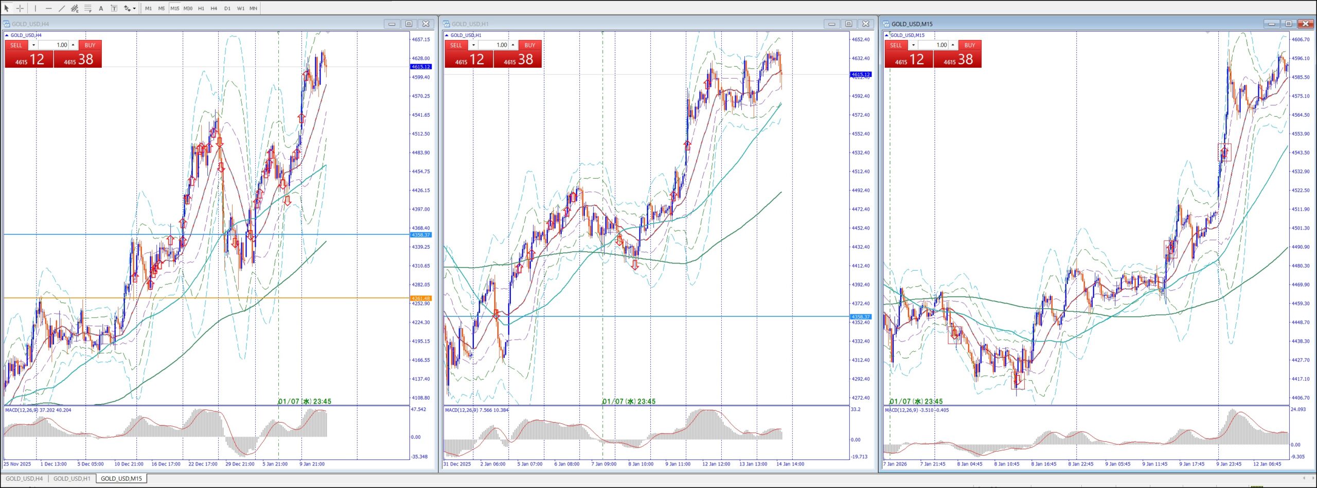 15Mでは、4Hの上のレジスタンスまで買い目線、上昇してる。