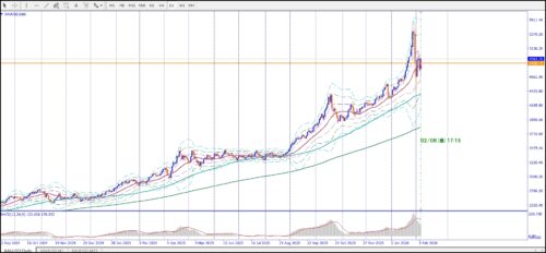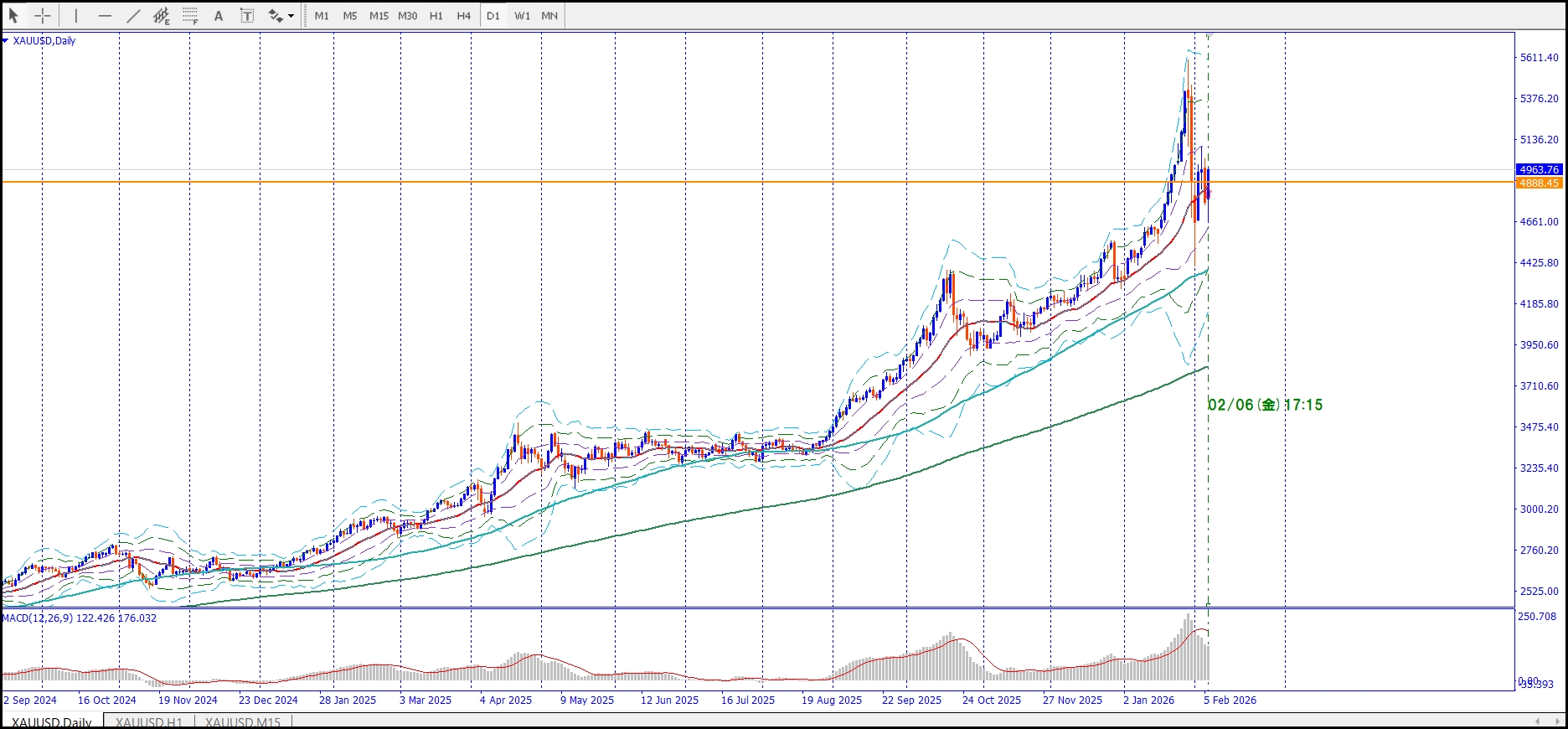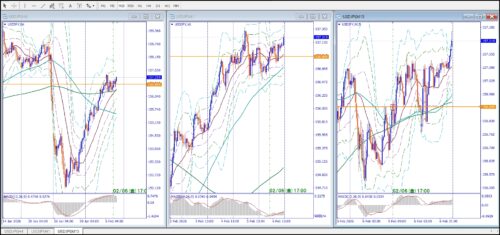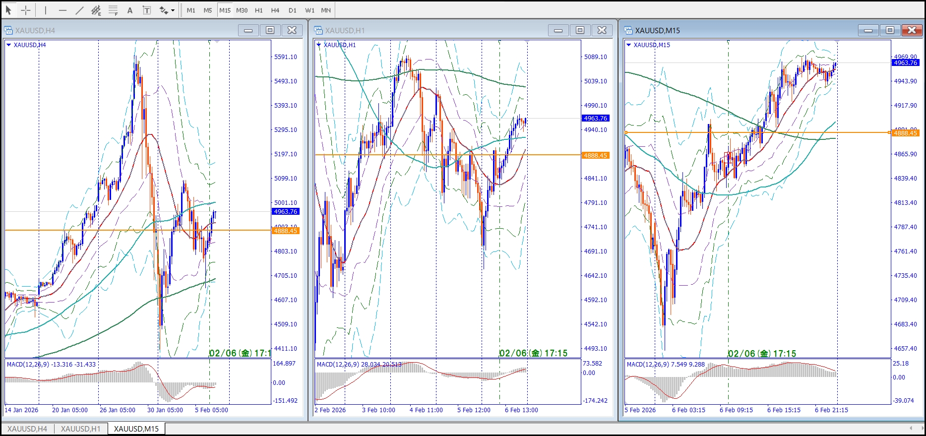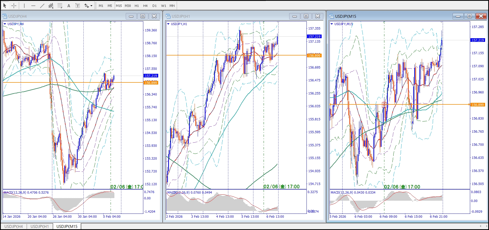 レートチェックでの暴落から、戻し上げ中。窓も埋めて上昇強い。