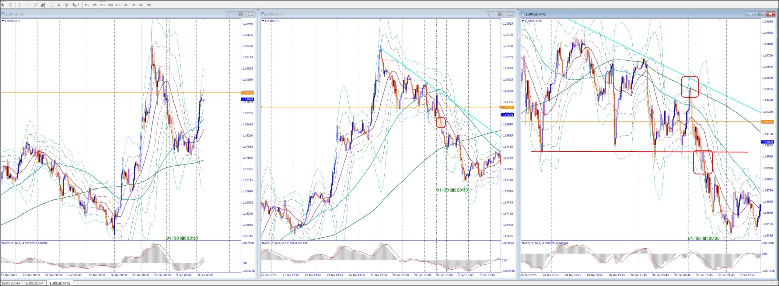 4hだとドカーン下げ後で方向感難しい。