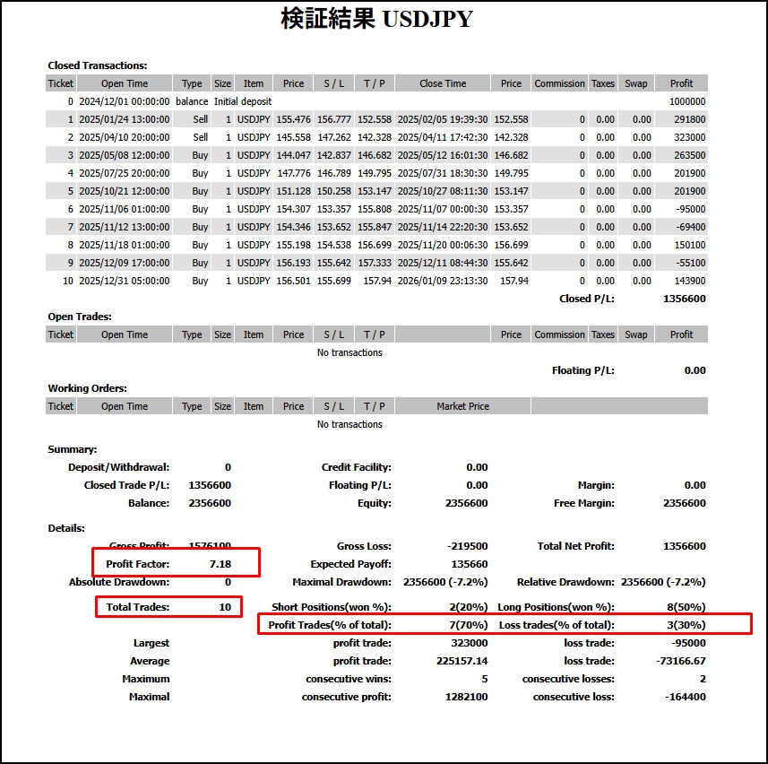 結果:10トレード7勝3敗