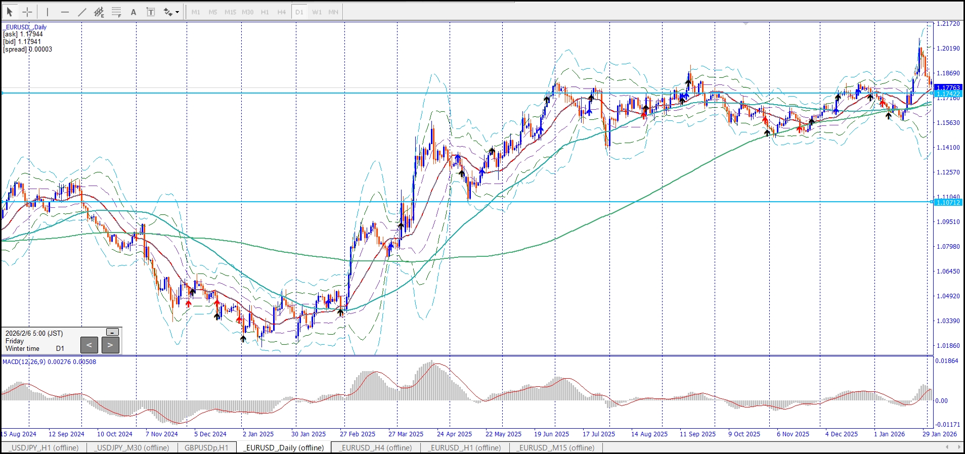 日足・4hのトレンドの天井底値圏判断は、週足ラインも見ていく。
