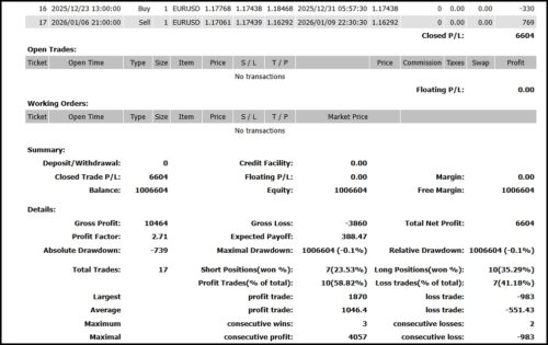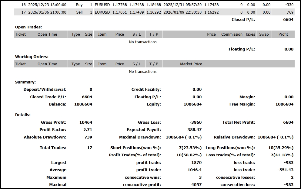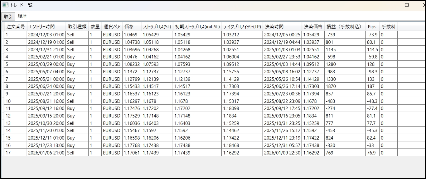結果:17トレード10勝7敗