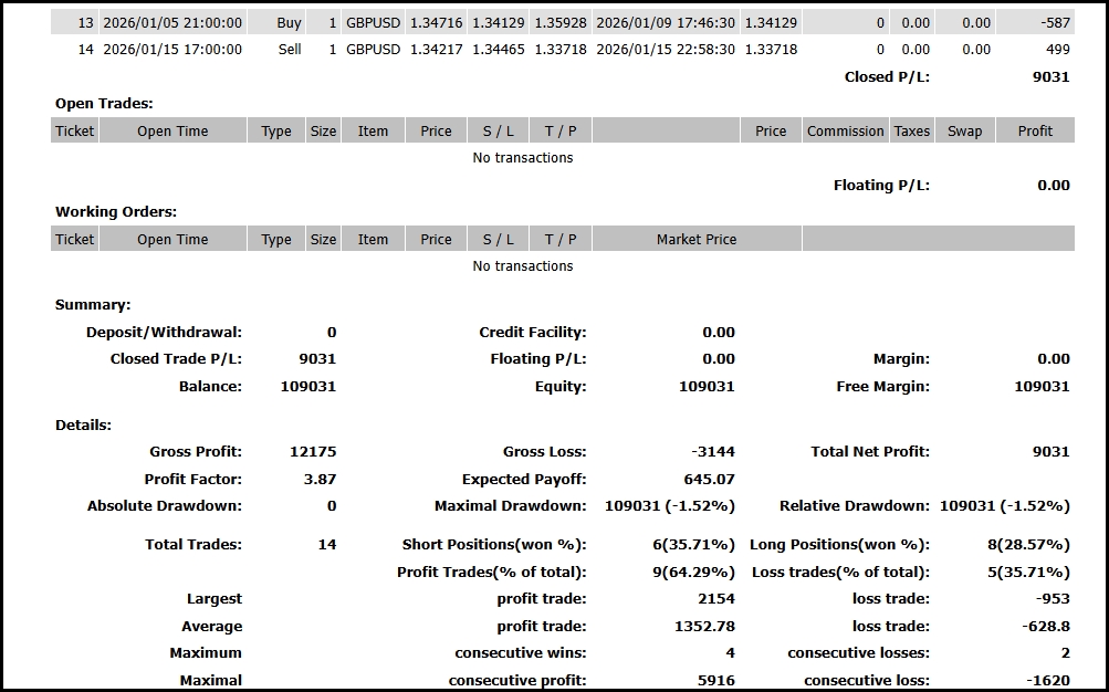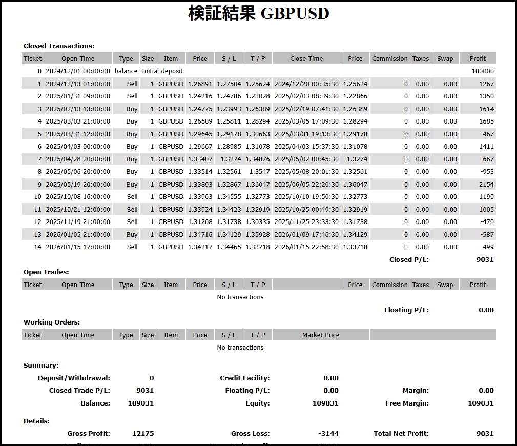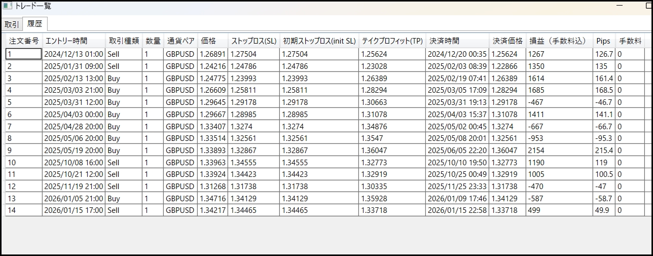 結果:14トレード、9勝5敗