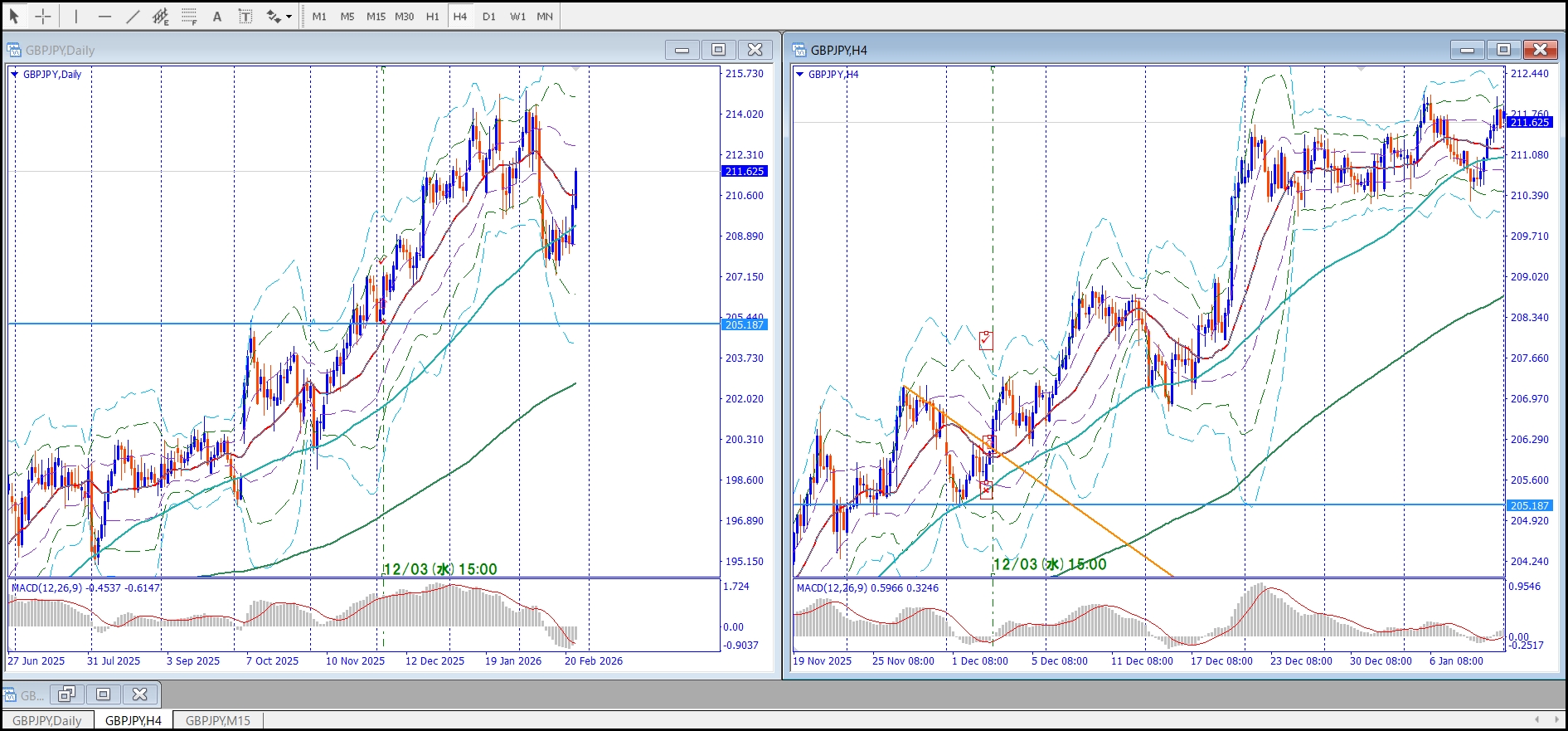 ポンド円 日足・4h