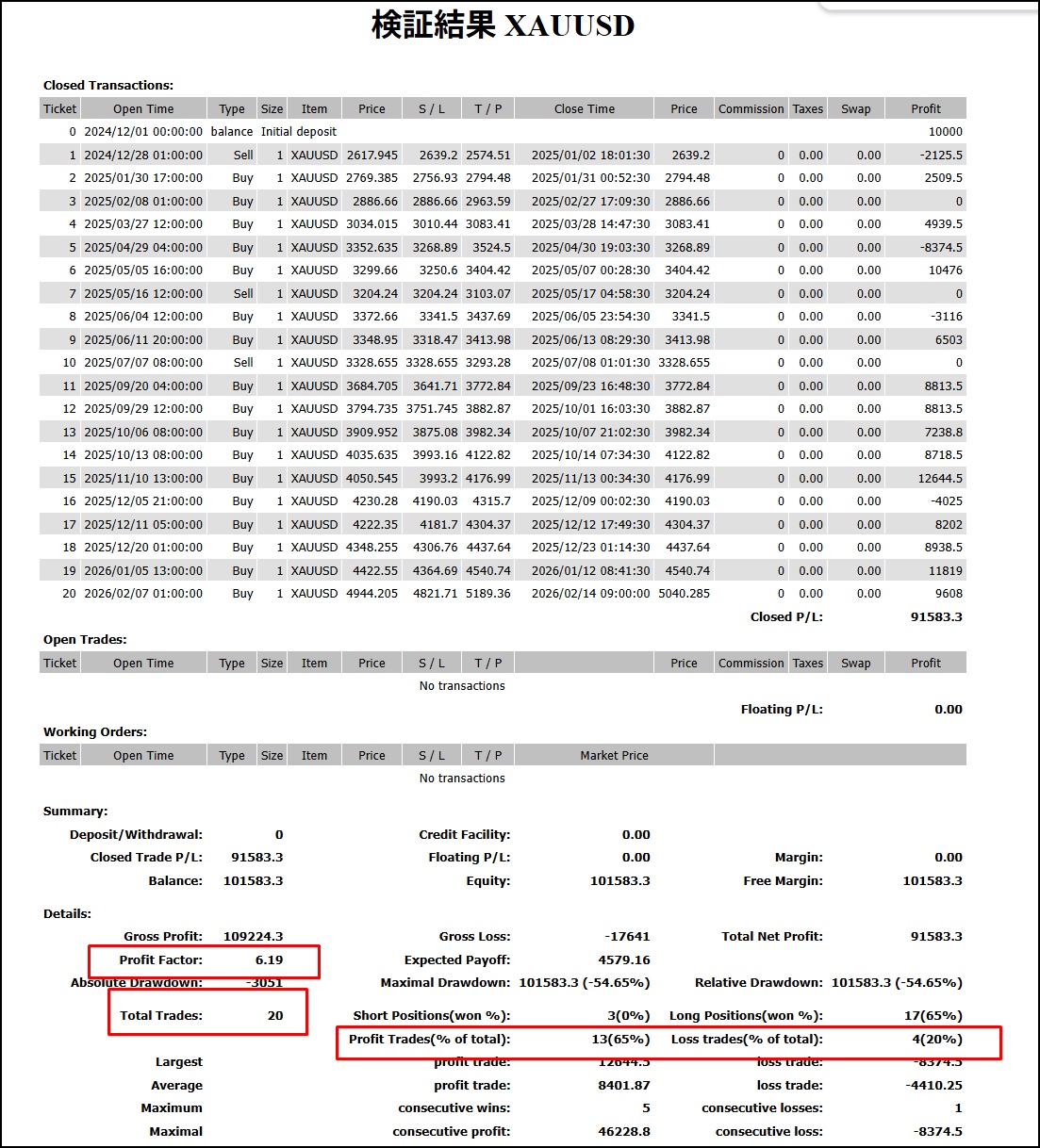 結果:20トレード、13勝4敗、3建値